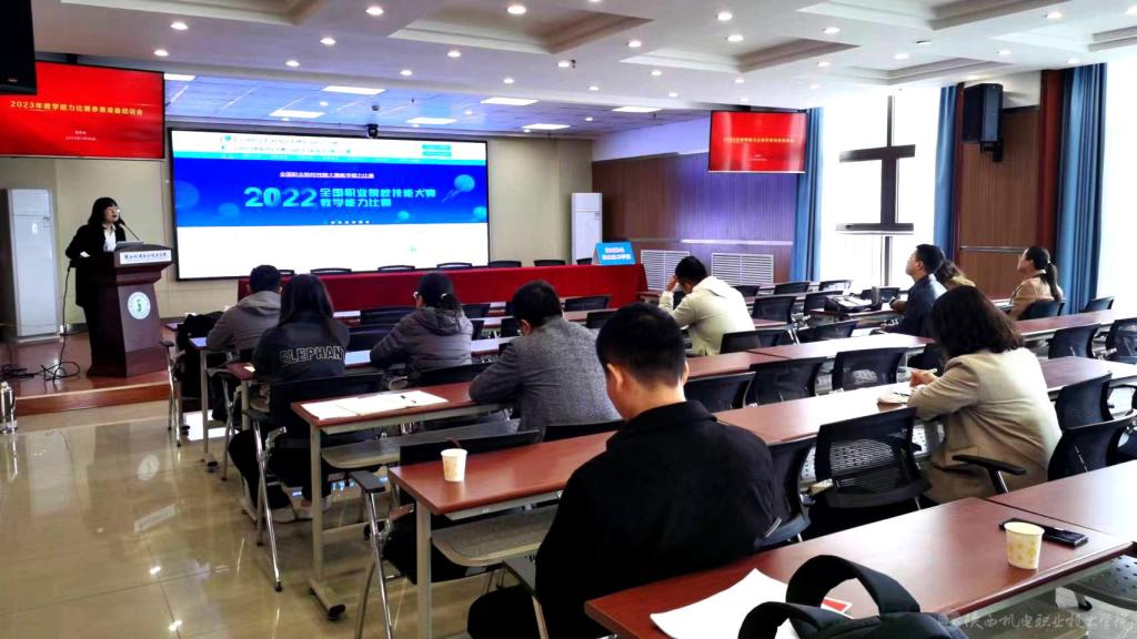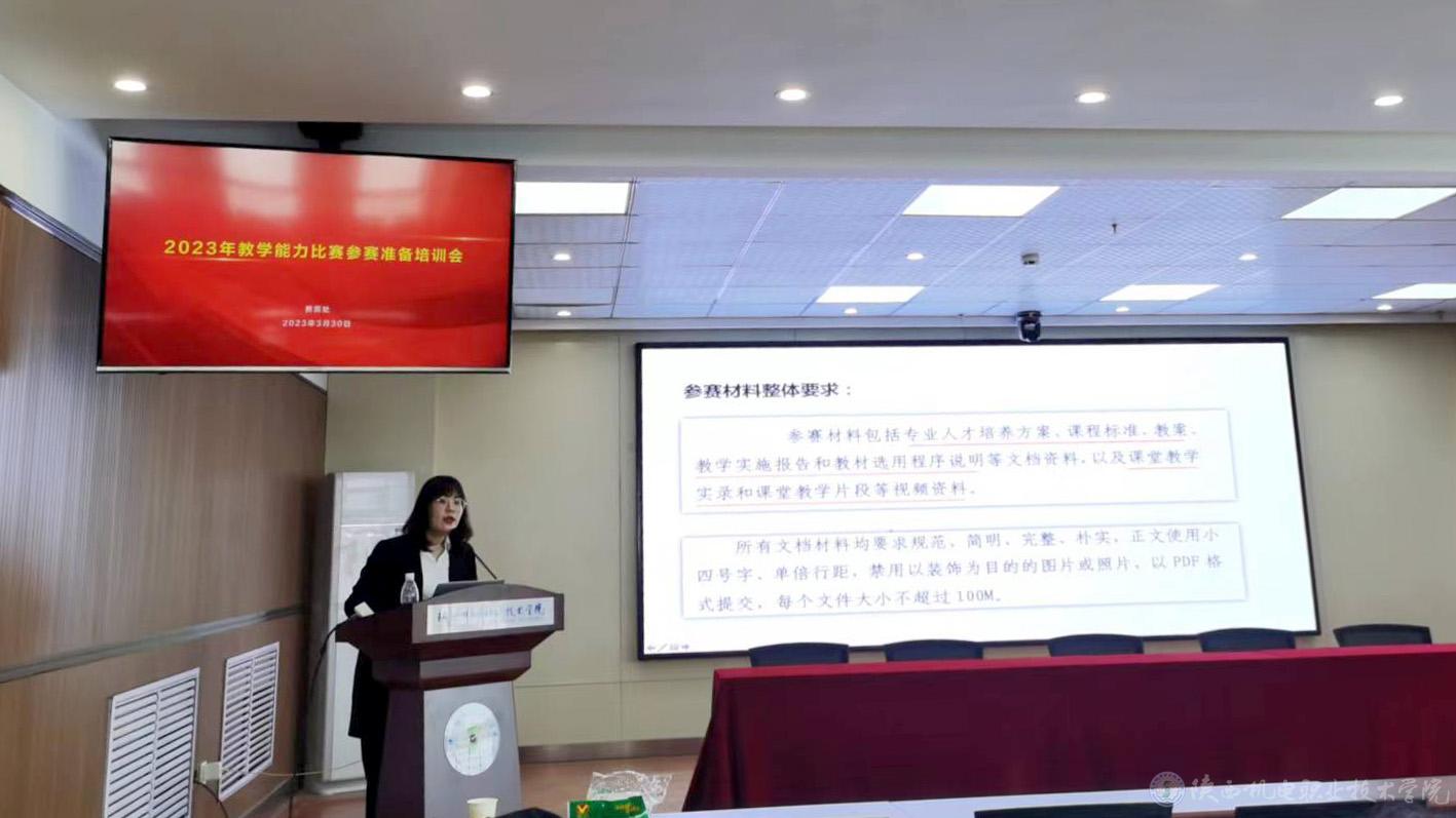 為進一步提高我校教師教學能力和信息化教學素養(yǎng),提前布局2023年陜西省教師教學能力大賽,助推教育教學質(zhì)量整體提升,3月30日下午,我校分別在寶福路校區(qū)汽車機電大樓視頻會議室和蟠龍校區(qū)博學樓111會議室舉行了教師教學能力比賽備賽培訓會。本次備賽培訓會邀請了北京超星集團超星職業(yè)教育研究院高級講師魏雅倩到校做方案剖析與備賽策略專題培訓。寶褔路校區(qū)會議由馬克思主義學院副院長王樞主持,蟠龍校區(qū)會議由基礎部(體育部)部長滿春燕主持。教務處、參賽團隊教師、近五年新進教師參加。