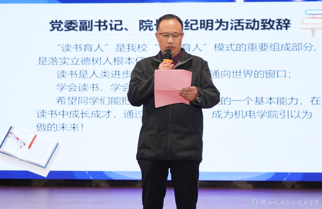 院長(zhǎng)向紀(jì)明致開(kāi)幕辭,希望同學(xué)們都能把讀書(shū)作為自己人生的一個(gè)基本能力,在讀書(shū)中成長(zhǎng)成才,通過(guò)讀更多的書(shū),成就美好未來(lái)!