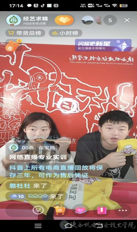 2023年5月29日起(周內(nèi)每天下午4點(diǎn)到5點(diǎn)30分),經(jīng)管與藝術(shù)學(xué)院網(wǎng)絡(luò)營銷與直播電商專業(yè)學(xué)生利用寶雞搟面皮產(chǎn)業(yè)學(xué)院的抖音號(hào)(附后),對(duì)陜西機(jī)電職業(yè)技術(shù)學(xué)院、寶雞搟面皮產(chǎn)業(yè)學(xué)院、以及寶雞搟面皮產(chǎn)業(yè)學(xué)院的產(chǎn)品進(jìn)行網(wǎng)絡(luò)宣傳推廣。