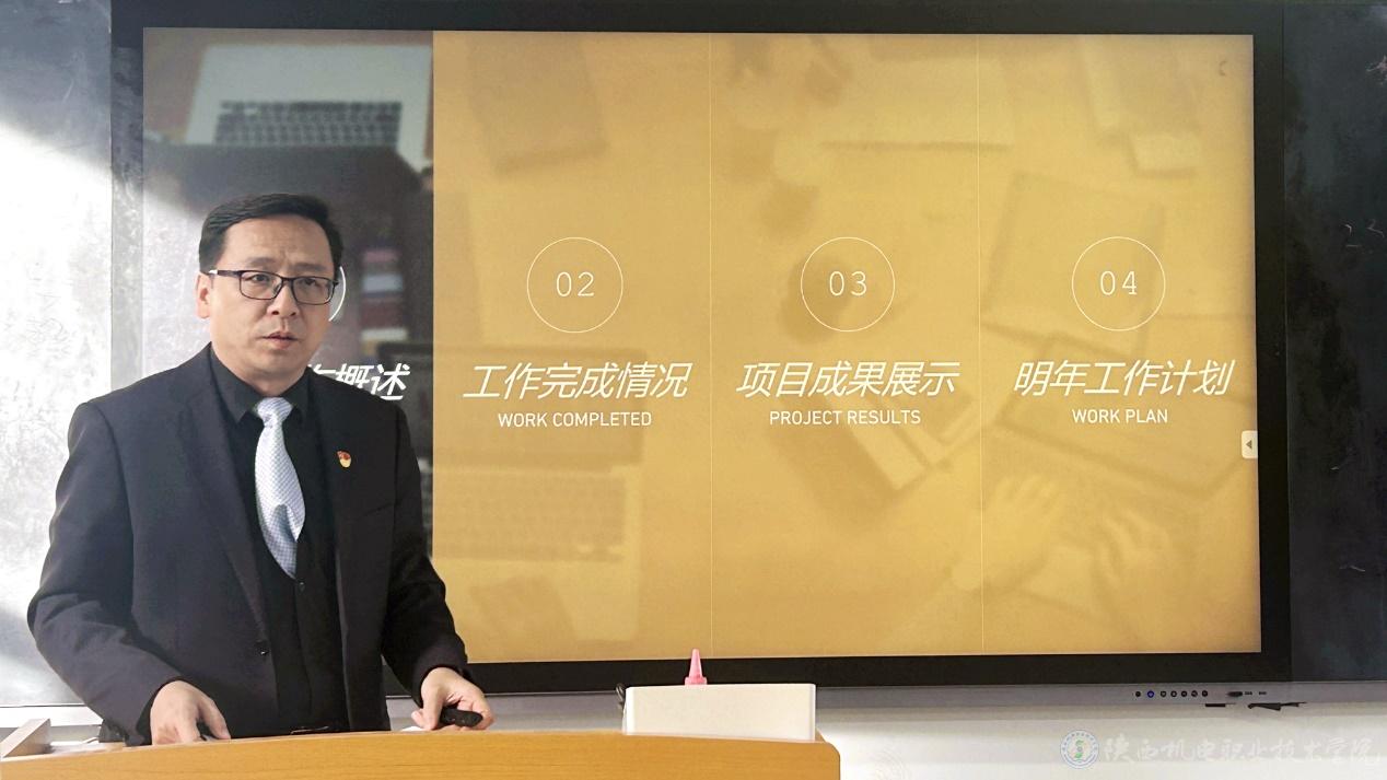 會議第一項(xiàng),李明從年度工作概述、工作完成情況、項(xiàng)目成果展示、明年工作計(jì)劃四個方面對部門本年度工作進(jìn)行了詳細(xì)總結(jié)。隨后,部門教師對李明進(jìn)行民主考核。