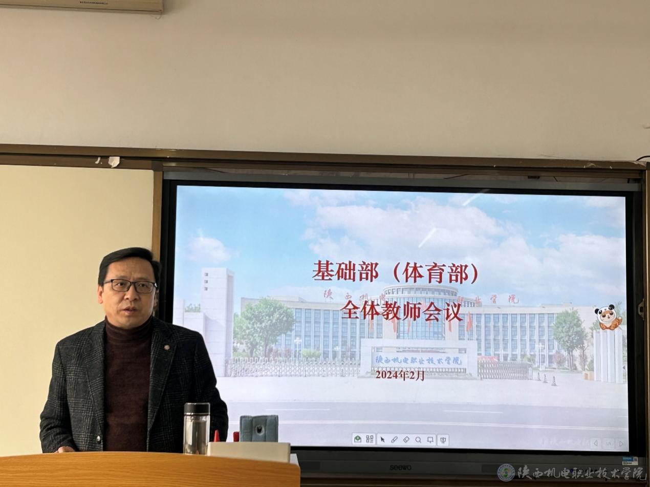 隨著新學(xué)期的到來(lái),為了更好地規(guī)劃和部署新學(xué)期教學(xué)工作,基礎(chǔ)部(體育部)于2月25日下午在寶福路校區(qū)召開新學(xué)期全體教師會(huì)議。會(huì)議由基礎(chǔ)部副部長(zhǎng)李明主持,全體教師參會(huì)。