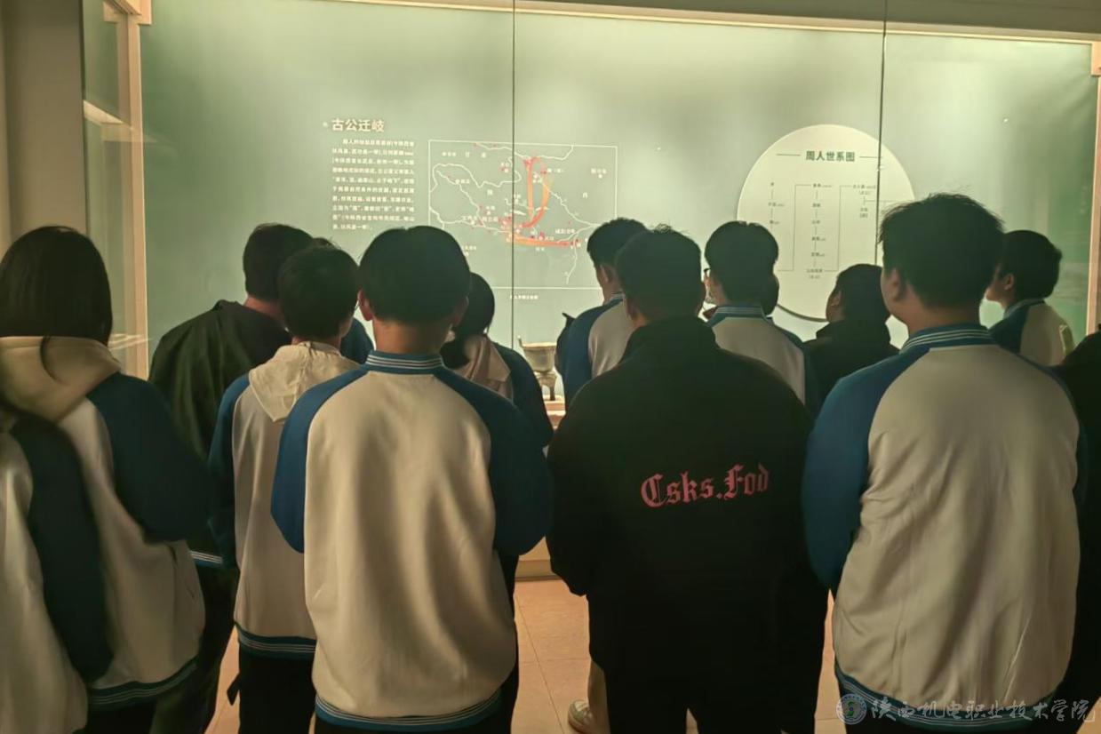 為深入學(xué)習(xí)貫徹黨的二十屆三中全會(huì)精神,貫徹落實(shí)習(xí)近平總書記在甘肅、陜西寶雞考察時(shí)的重要講話精神,引導(dǎo)學(xué)生深入了解中華優(yōu)秀傳統(tǒng)文化,感受中國(guó)古代青銅器文化的獨(dú)特魅力,11月21日下午,陜西機(jī)電職業(yè)技術(shù)學(xué)院馬克思主義學(xué)院組織師生赴寶雞青銅器博物院開展“延續(xù)歷史文脈 堅(jiān)定文化自信”思政課實(shí)踐教學(xué)活動(dòng)。