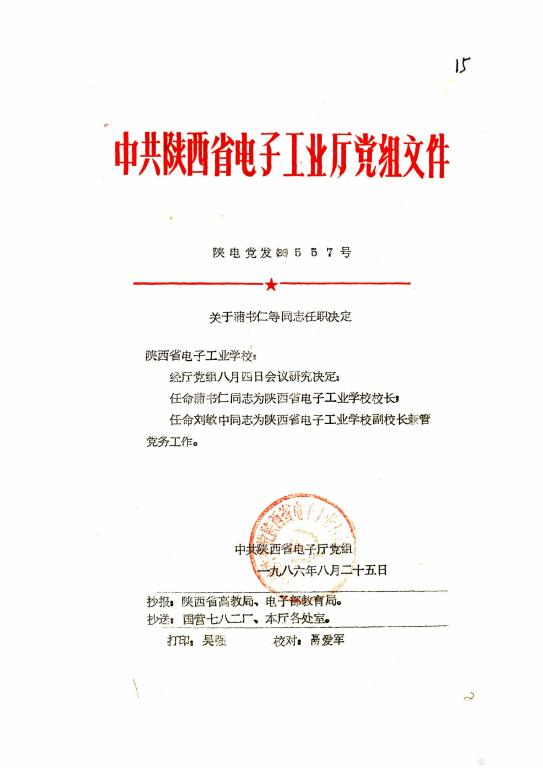 陜西省電子工業(yè)學校黨發(fā)[1986]557號文件